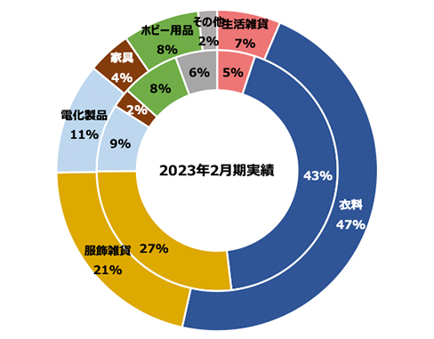 主に衣服とアクセサリーの割合が高く、売上の47%が衣服、21%がアクセサリーであり、合わせて68%がファッション用品となります.